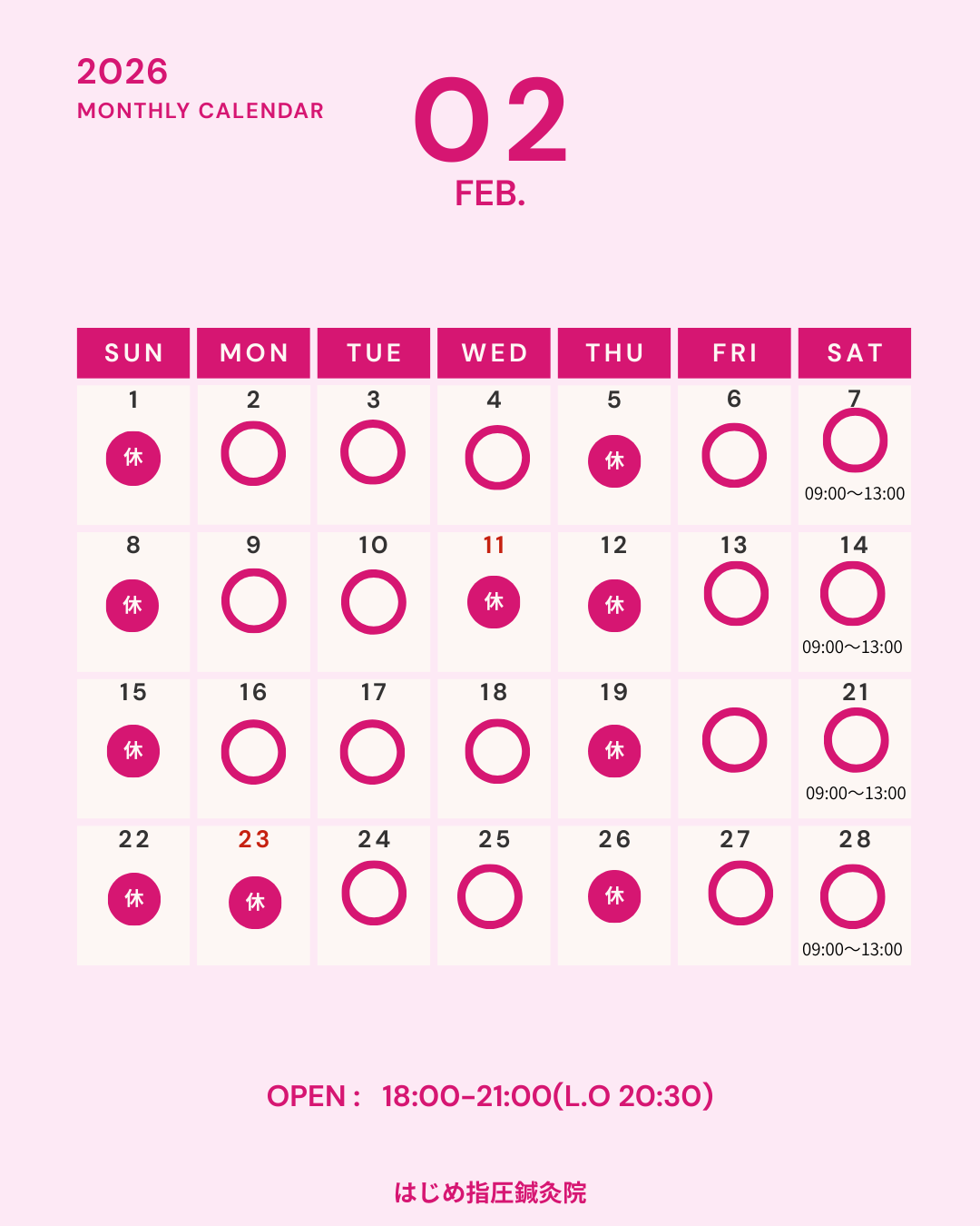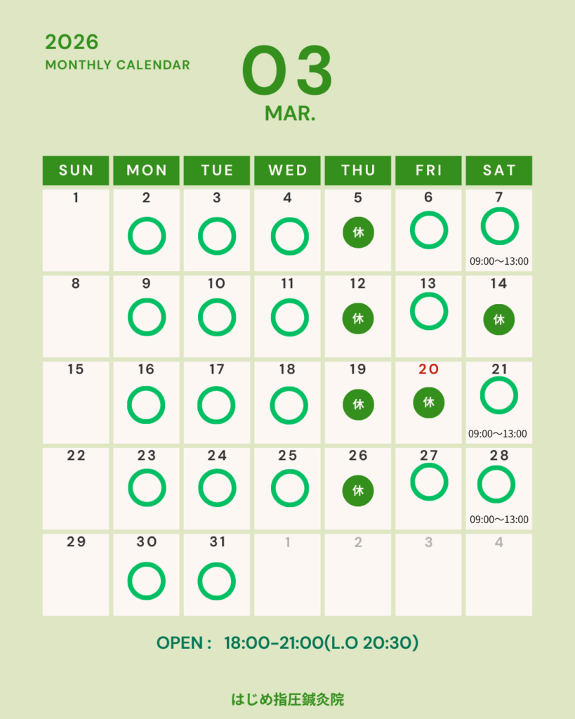 ■ お仕事帰りでも気軽に通える治療院。をコンセプトに夕方から比較的遅い時間帯まで診療しています。